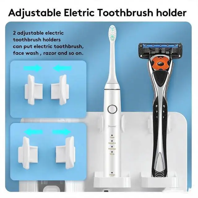 - Adjustable electric toothbrush holder not only can hold electric toothbrush, but also can be adjusted to fit small razors and face wash, etc;