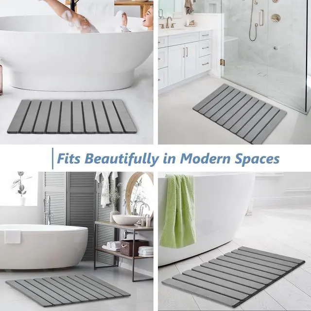 In addition to bathrooms, it can be used in kitchens, near sinks, laundry areas, or entryways where quick water absorption and fast drying are needed.