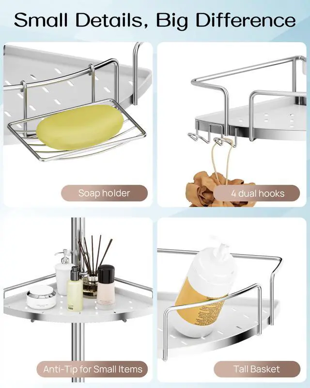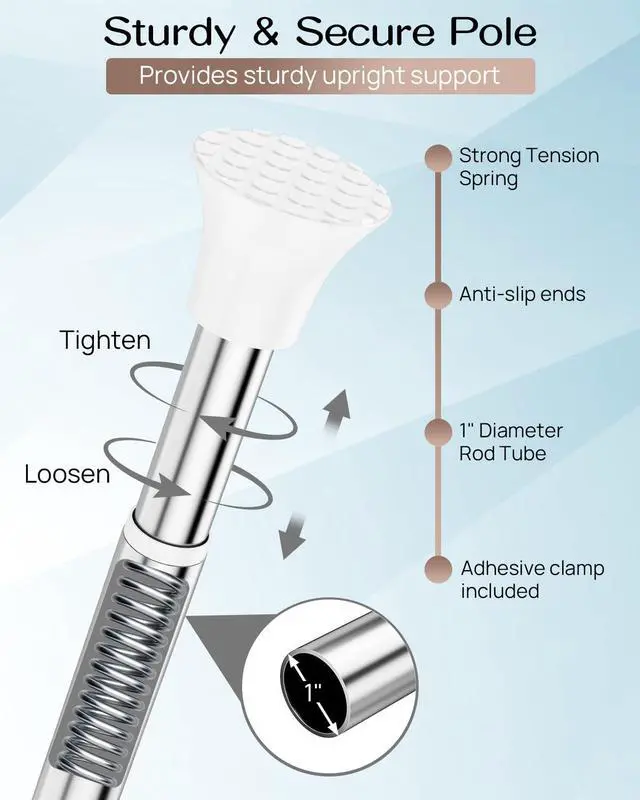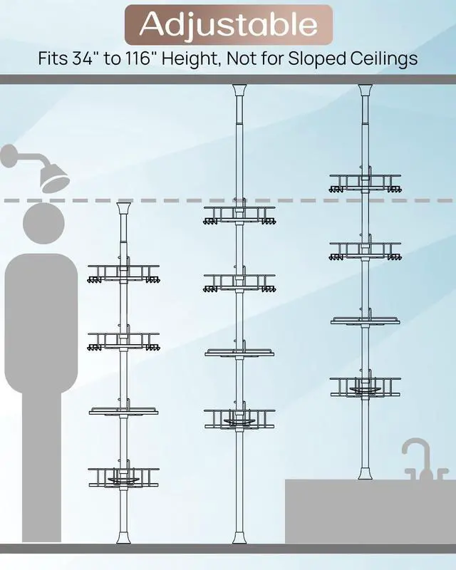Keep your bathroom organized and clutter-free with our Shower Caddy Tension Pole. This adjustable, space-saving solution fits neatly between your floor and ceiling, providing a sturdy support for your shower essentials. The pole is designed to hold multiple shelves, perfect for storing soap, shampoo, conditioners, and other bathroom accessories. Its tension-based installation requires no drilling or tools, making it easy to set up and move without damaging your walls. With its sleek, modern design and durable materials, this shower caddy is the perfect addition to any bathroom, offering both functionality and style.