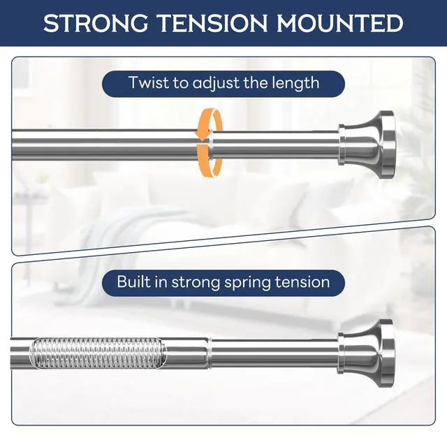 No tools or drilling are required. It utilizes an effortless twist-to-extend design with non-marring rubber pads. This ensures a secure, damage-free installation on painted walls, tiles, or wood.