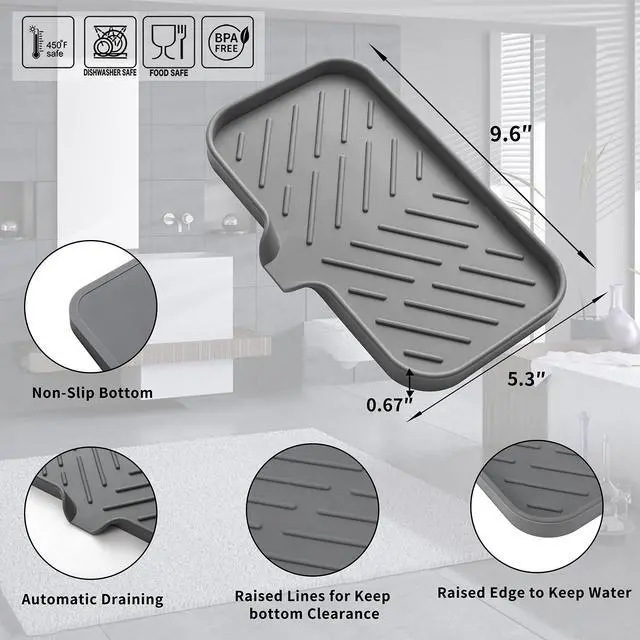 MicoYang soap dish is made of food-grade silicone without BPA, which is softer, waterproof, heat-resistant.the soap holder is the perfect addition to any bathroom or kitchen. Its non-slip design ensures your soap stays in place while its drainage holes prevent water buildup.There is enough space of the silicone trayto store 2-3 small items such as dish soap dispenser, scrubbers, dispenser, et