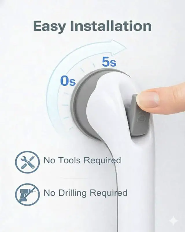 SIMPLE INSTALLATION & REMOVAL: Installation of the CIVJET grab bars requires no tools or drilling. Simply ensure the surface is clean and dry, then flip the locking latches to secure them. They can be easily removed for cleaning or repositioning, ensuring a secure attachment every time they are used. (Always clean and dry the surface before installation)