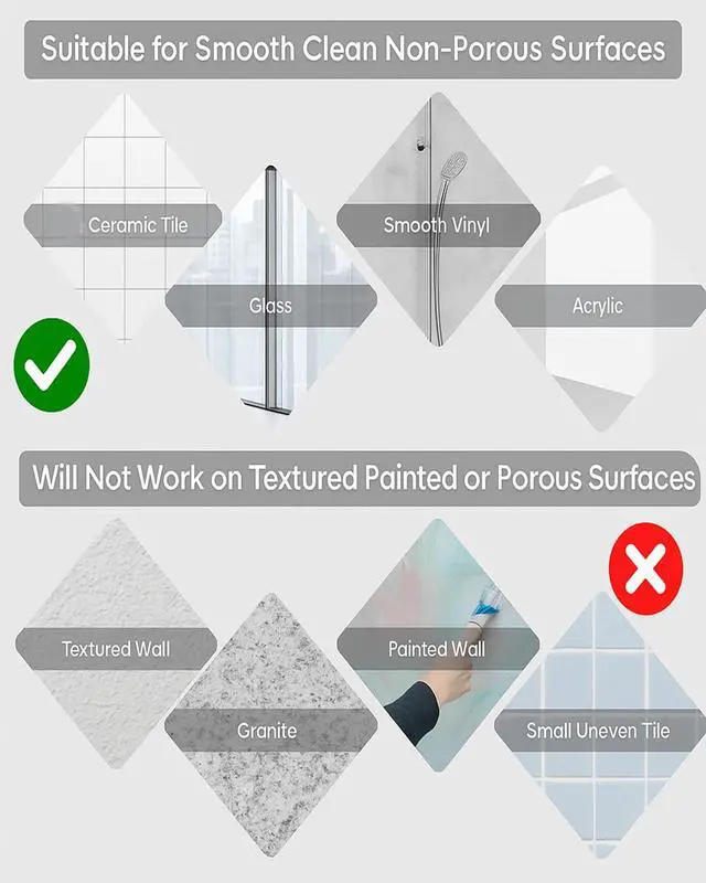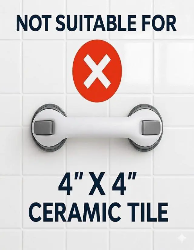 IMPORTANT NOTE: CIVJET bathroom grab bars are designed exclusively for smooth, non-porous surfaces such as tiles, glass, acrylic, and metal. Avoid installation on porous surfaces or grout lines as these may cause the suction cup to lose its grip. These bars are intended to assist with partial weight support and should not bear full body weight