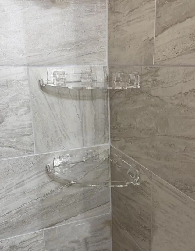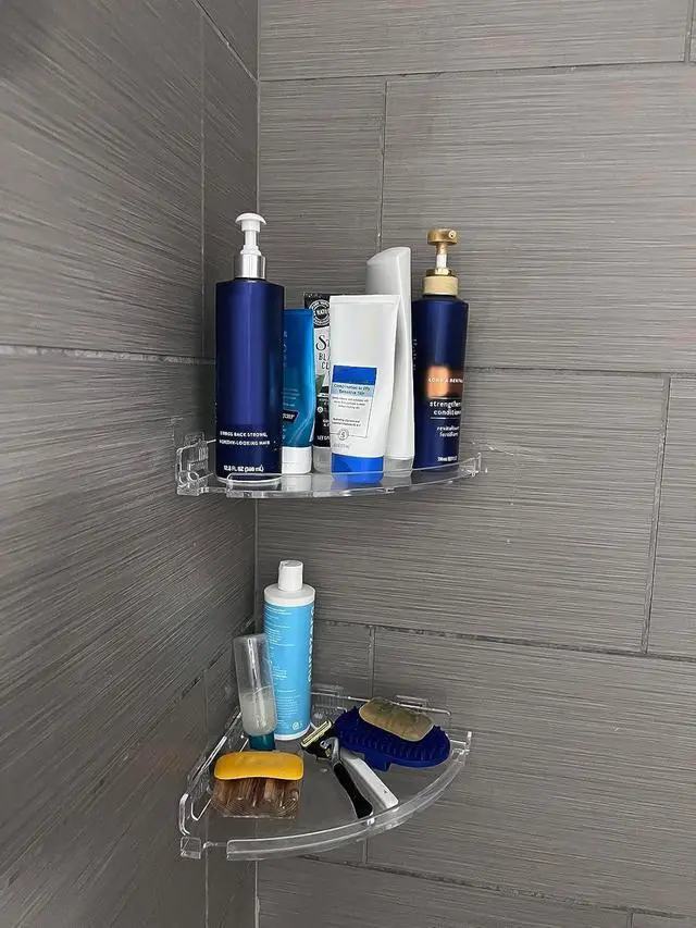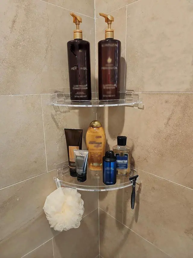 Clear Acrylic Shower Shelf Rustproof & Waterproof Made from thick transparent acrylic, this acrylic shower shelf will not rust or corrode like metal. Perfect for humid bathrooms and easy to clean for daily use.