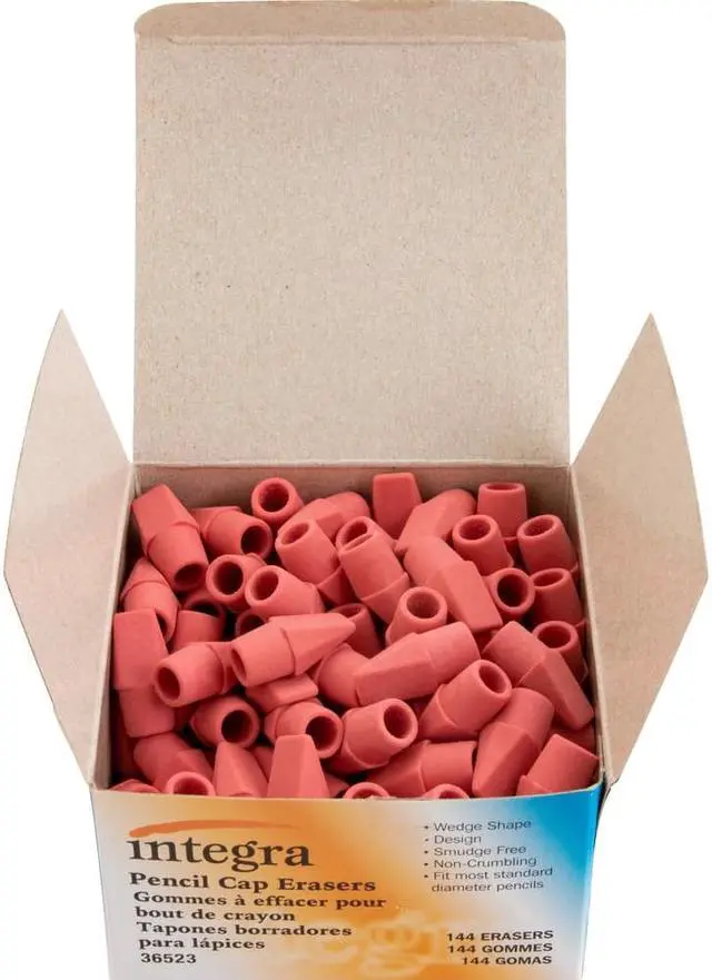 • Pencil cap eraser features a wedge-shaped design. Latex-free eraser fits all standard pencils.