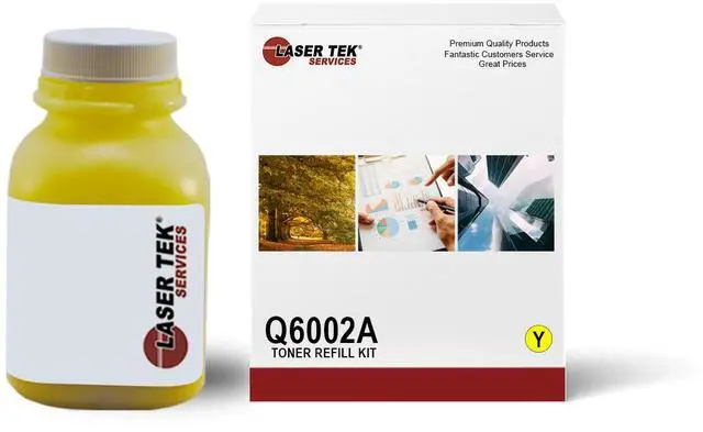 Compatible Printer Models: HP Color LaserJet 1600 2600 2600N 2605 2605DN 2605DTN printer series Happiness for your printer! Laser Tek Services is dedicated to bringing our customers only the highest quality Ink Cartridges, Toner Cartridges, and Toner Refill Kits at factory direct prices. Why Customers Choose Laser Tek Services? CUSTOMER SATISFACTION IS OUR TOP PRIORITY. We seek to create a positive customer experience by providing a superior line of compatible ink cartridges, compatible toner cartridges and HP 124A Q6002A toner cartridge refills that never fails to deliver. A trusted brand in the Toner cartridge remanufacturing industry. A trusted brand in the Toner cartridge remanufacturing industry. We stand by the build quality, reliability and print performance of our HP 2600 2600N printer consumables. This, together with our commitment to giving the best to our customers are keys to our success. Why you should use Laser Tek Services toner refill kits? * Recycle and reuse your toner cartridges up to three times! It's a cost-saving printer solution with great environmental benefits. * Maintain high quality prints with lowest printer operation cost. Save up to 50% on every toner refill and reach the same number of pages similar to OEM.