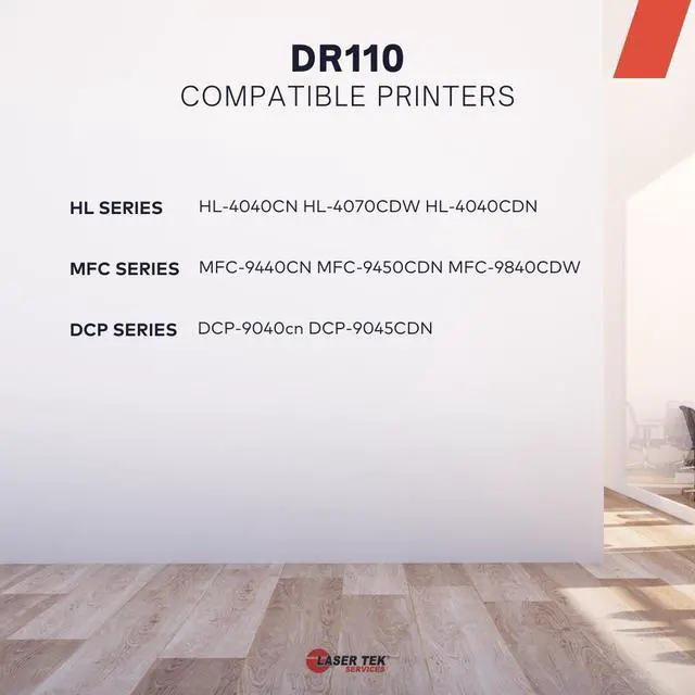 Laser Tek Services compatible drum unit replacement for Brother DR-110. This compatible drum unit works in the following