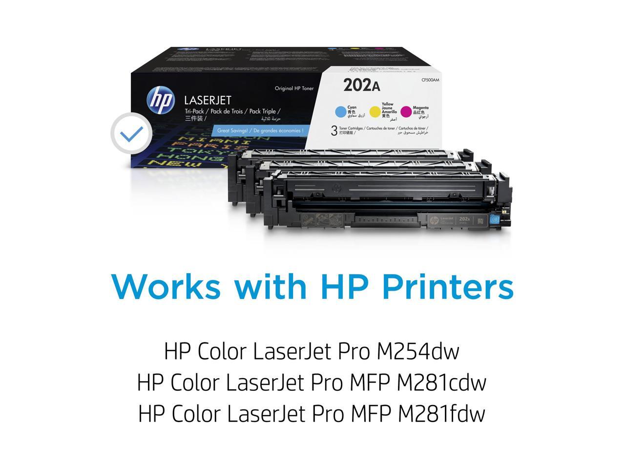 HP 202A 3-pack Cyan/Magenta/Yellow Original LaserJet Toner Cartridges, CF500AM