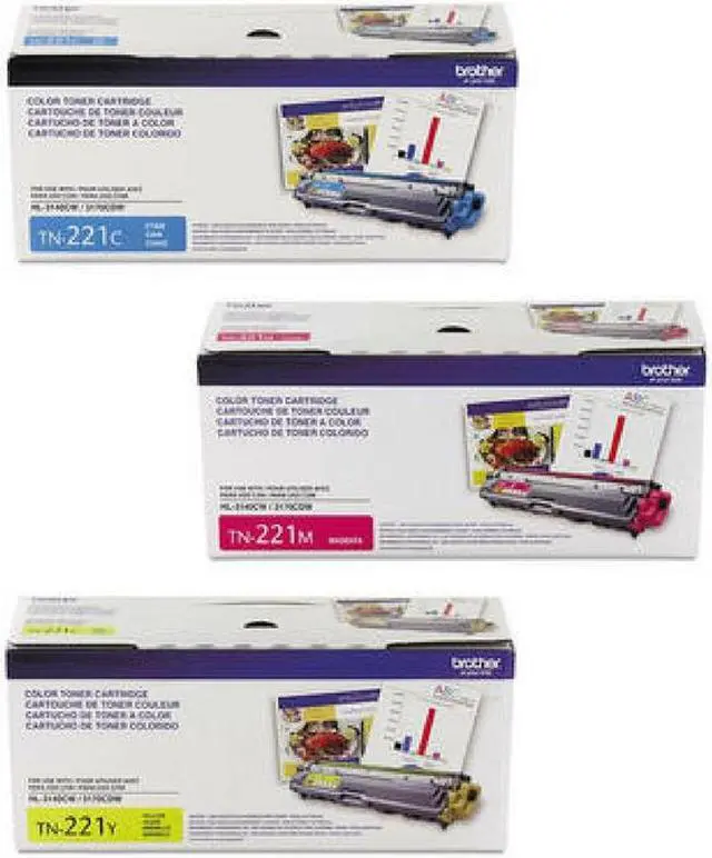 Genuine Brother TN221 (TN-221) Color (Cyan/Magenta/Yellow) Toner Cartridge 3-Pack (TN221C, TN221M, TN221Y) Brother HL-3140CW, HL-3170CDW, MFC-9130CW, MFC-9330CDW