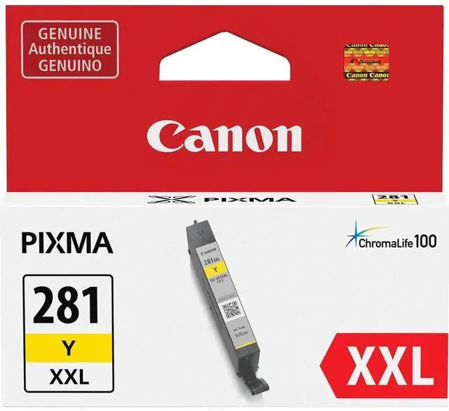 A part of the ChromaLife100 System, this replacement 11.7 mL CLI-281 XXL Ink Tank from Canon will allow you to create photos that will last up to 100 years in album storage. Designed for select PIXMA-series inkjet printers, this dye-based ink will maintain overall print quality for up to 30 years when the print is mounted behind glass or up to 20 years in an open environment.