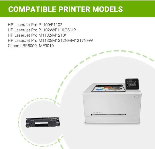 COMPATIBLE WITH PRINTERS: HP P1100 P1102 P1102W P1102W HP M1132 M1210 M1130 M1212NF M1217NFW, Canon LBP6000 MF3010