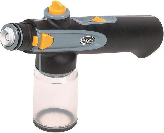 Soap Dispensing Nozzle, Connection Type GHT, Construction ABS Plastic, Nozzle Design Fan, Flow Control Slide Valve, Features One Button Soap and Water Mix Control, Pole Adapter, SmartNozzle (TM) with 2 oz Soap Mix Canister, Max. Media Temperature 100 Degrees F. This item has been restricted from sale in the following state (s): []