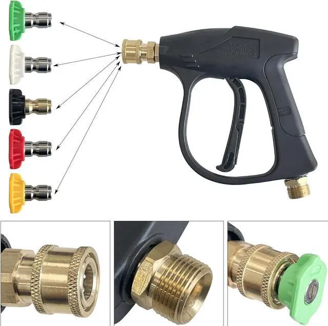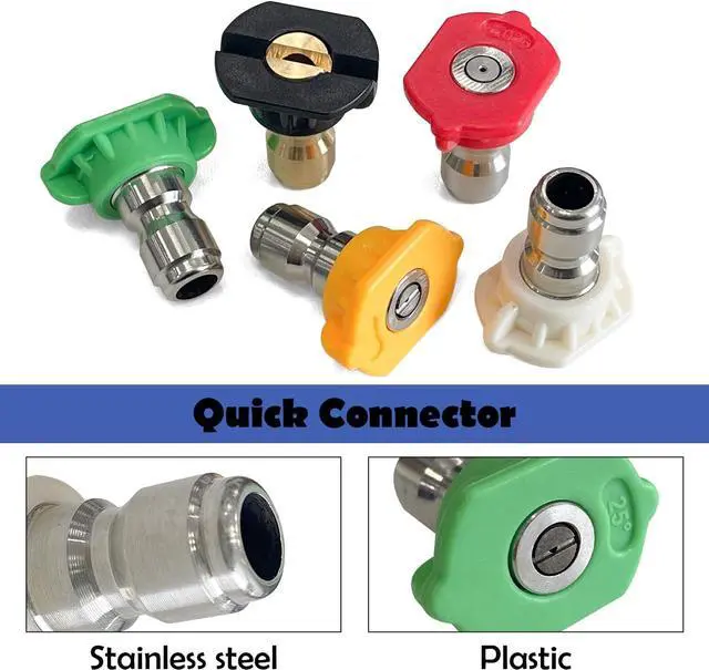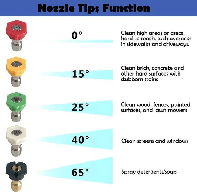 5 Nozzle Tips have different angle (0, 15, 25, 40, 65 degree). Choose different nozzle according to the actual watering heights need. They also can be attached to a quick-connect wand for swifter application and more.