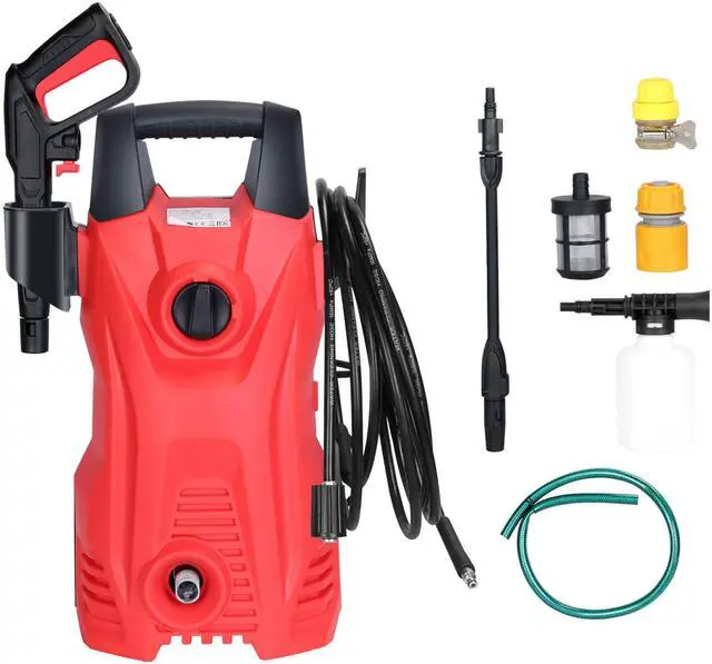 Powerful Pressure Washer: This 1400W powerful electric washer generates up to 3000PSI working pressure and 2.6GPM of water flow. Come with tap connector and self-priming strainer, you can choose the water supply ways according to your personal needs. Increased efficiency but less weight, portable handle and long enough water tube allow you to conveniently clean cars, bicycles, fences, sidewalks, walls, gardens, yards, etc..