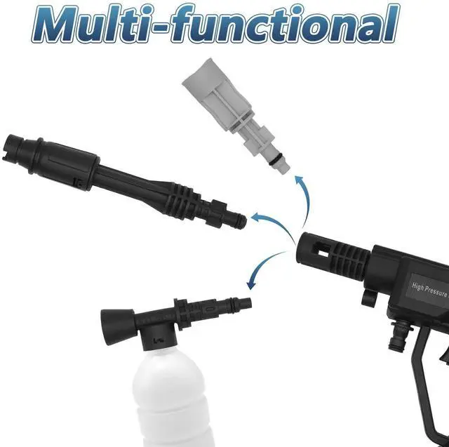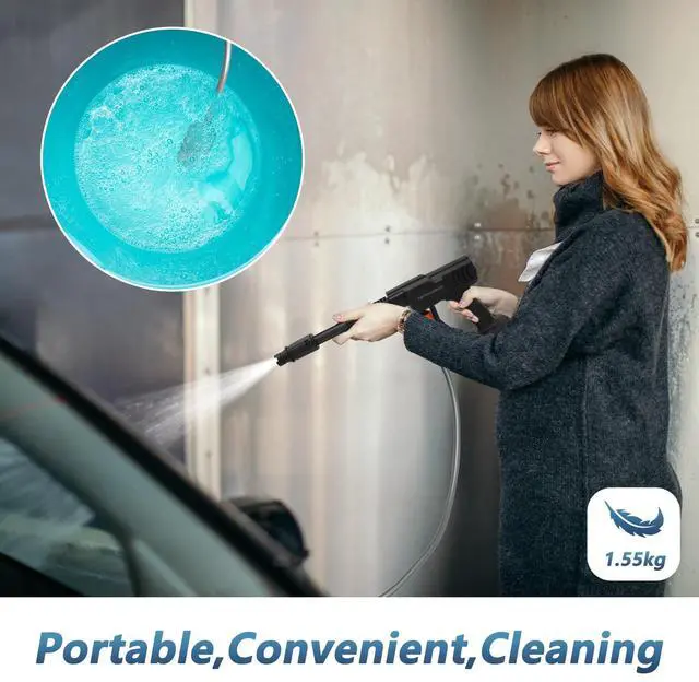 - The cordless pressure washer allows you to clean your car without the need to plug in a power source during use, eliminating wire faults.
