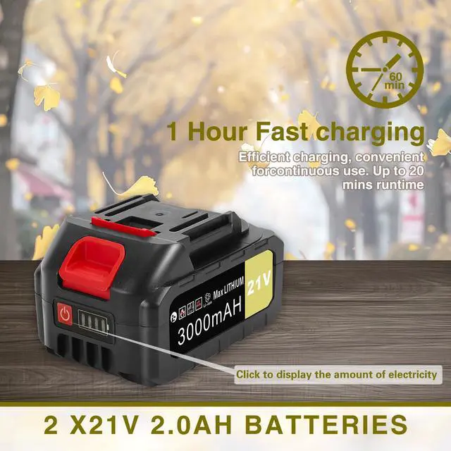 Powerful Cordless Convenience: The 21V electric cordless leaf blower is designed for ultimate mobility. With 2 powerful 2.0Ah batteries and charger included, you can work without being tethered by cords, making it the perfect battery powered leaf blower for any lawn care or outdoor cleaning job.