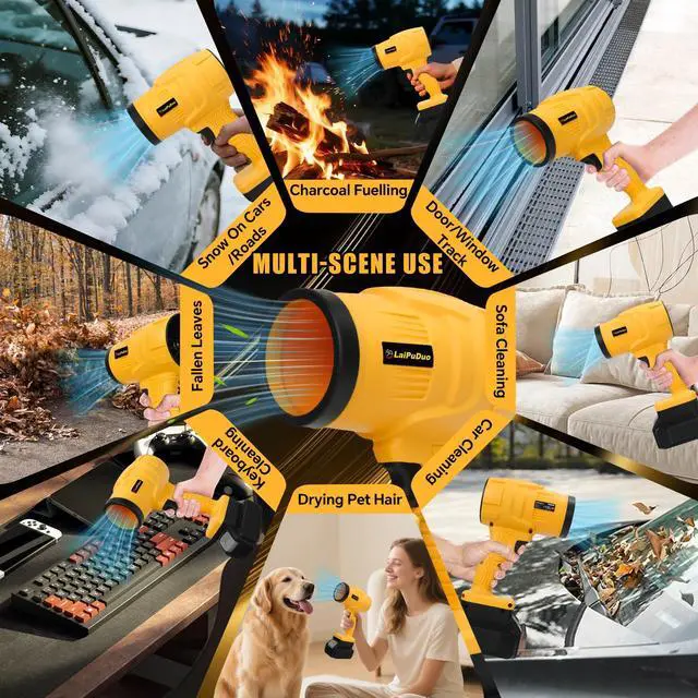 WHAT YOU WILL GET: Package Includes: The package includes: 1x Cordless Leaf Blower, 1x Extension Nozzle (for extended reach, and 1x Turbo Nozzlefor concentrated, 1x user manual. It's your ideal tool for camping and barbecuing, drying vehicles, clearing patios, cleaning gutters, and removing light snow