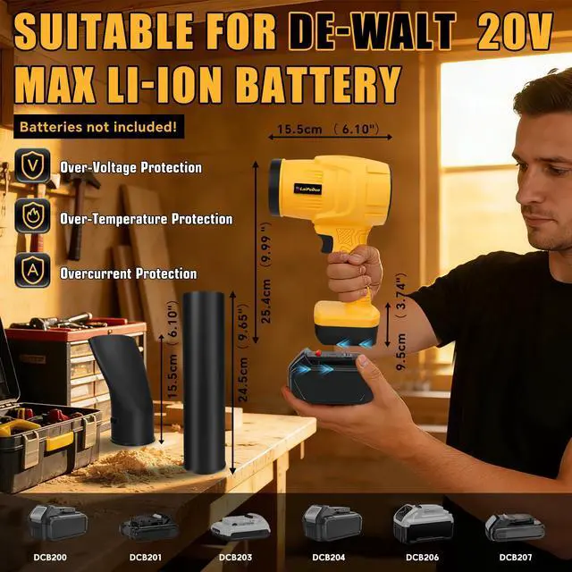 LIGHTWEIGHT & ERGONOMIC HANDHELD DESIGN: Weighing only 1.9lbs (0.86kg), this mini blower for DeWalt is exceptionally lightweight and compact. Reduce arm fatigue during prolonged use, making it easy for anyone to operate single-handedly and store conveniently in your car or shed