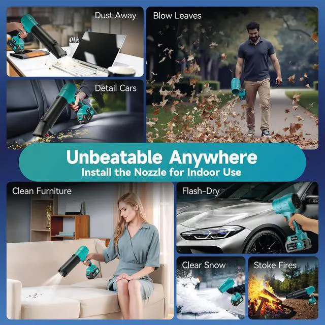 Unstoppable Air Power: Hit the switch and get ready to be blown away! Its 115 mph wind speed makes quick work of leaves, light snow, dust, debris, and shallow puddles like they're feathers. Whether it's clearing yard leaves, patio dust, workshop sawdust/metal shavings, car messes, furniture dust, or snowy walkways just squeeze the trigger, dial the wind speed, and get the job done. Effortlessly