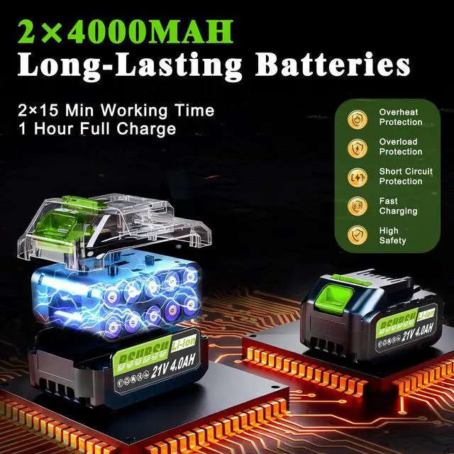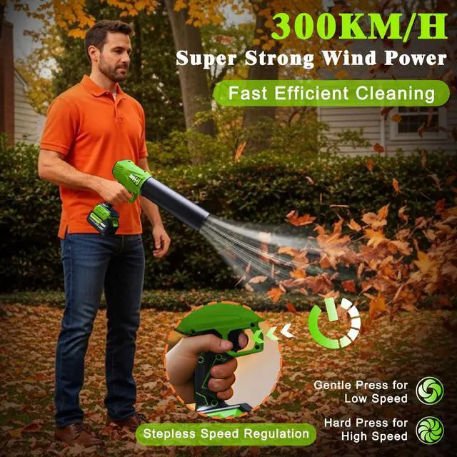Long-Lasting & Uncompromising Safety- Driven by two 4.0Ah high-quality lithium-ion batteries, BSUBSU cordless leaf blower offers tangle-free, non-stop operation. Enjoy extended reach and superior safety without the cord hassle. The built-in BIS chip provides advanced thermal protection, guaranteeing completely secure and risk-free use.