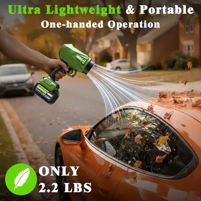 Lightweight & Ergonomic- BSUBSU leaf blower weighs just 2.2 pounds (including battery and extended nozzle), portable and easy to use, handheld design allowing access to tight spaces like corners and flower beds. Comfortable grip and balanced design reduce fatigue during extended use.