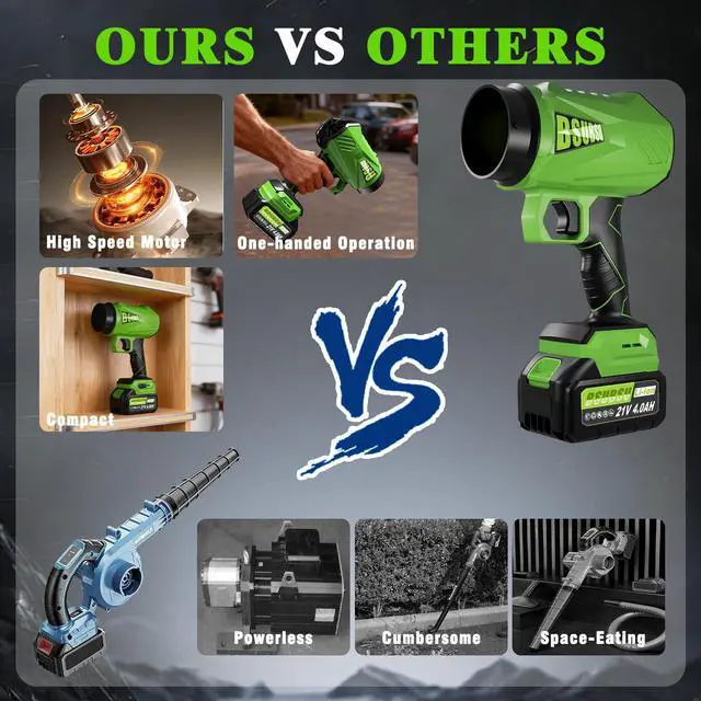 High-quality & High-efficiency- Equipped with upgraded High-Efficiency brushless motor, 450CFM Air Flows Rate lets you tidy up your entire yard in just minutes. The collector nozzle focuses the airflow for maximum efficiency and precision when clearing debris. BSUBSU handheld electric cordless leaf blower uses high-speed airflow to efficiently gather leaves, grass clippings, debris, and even snow into piles. It is a far more efficient tool than traditional brooms and rakes.