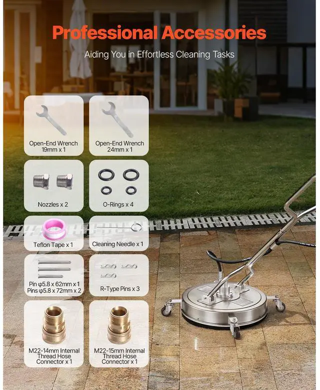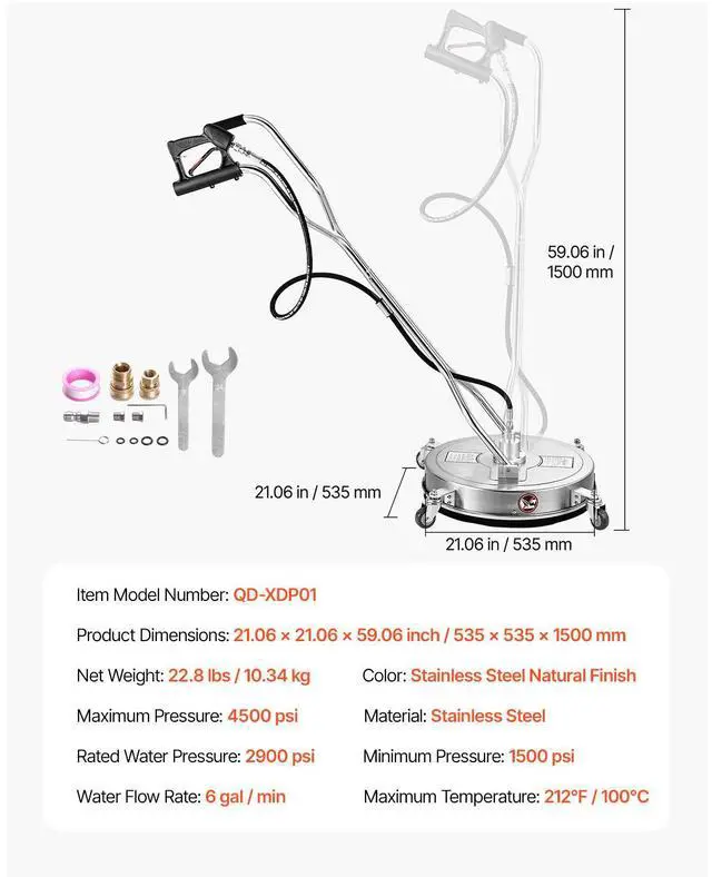 21" Pressure Washer Surface Cleaner, Stainless Steel Pressure Washer Attachments with 4 Wheels, 4500 Max PSI, 3/8 Quick Connector, 2 Spray Nozzles, Dual Handle, for Concrete, Patio, Sidewalk