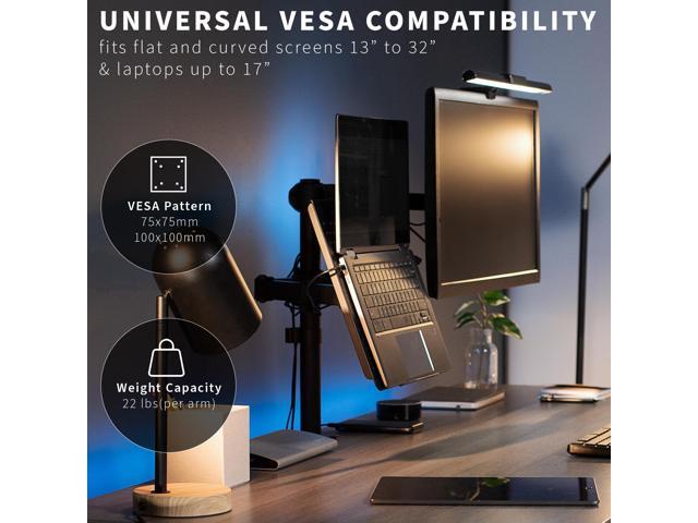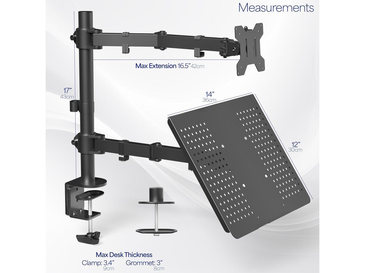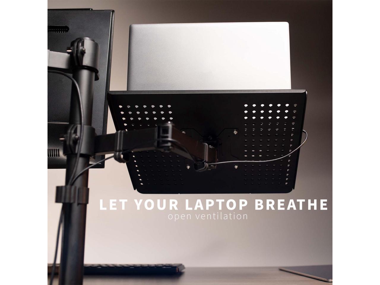- Fits 13" to 32" Screens: Single monitor mount fitting most computers 13 to 32 in size and 22 lbs in weight with 75x75mm or 100x100mm backside mounting holes. The vented tray holds laptops up to 17