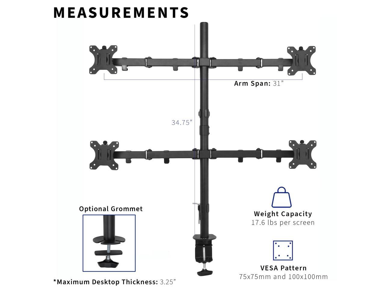 VIVO Quad Monitor Desk Mount Adjustable Stand Heavy Duty for 4 Screens up to 30"