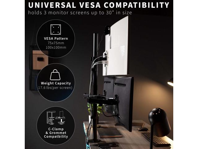 - Fits up to 30" Screens: This triple mount holds 3 screens up to 30" and 17.6 lbs each with 75x75mm and 100x100mm VESA mounting holes