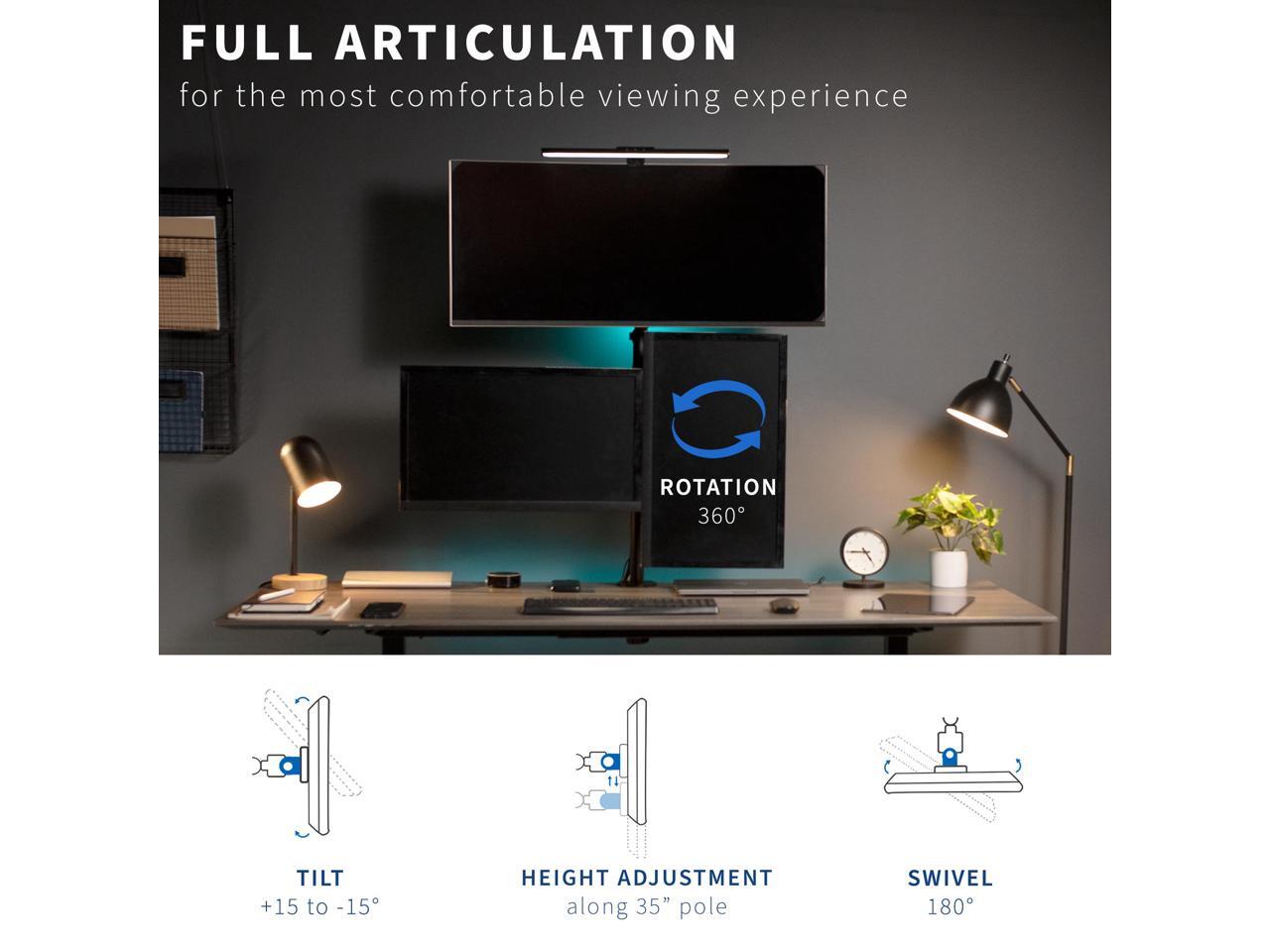 - Full Motion: Stand features +15° to -15° tilt, 180° swivel, 360° rotation, and height adjustability for optimal viewing angles