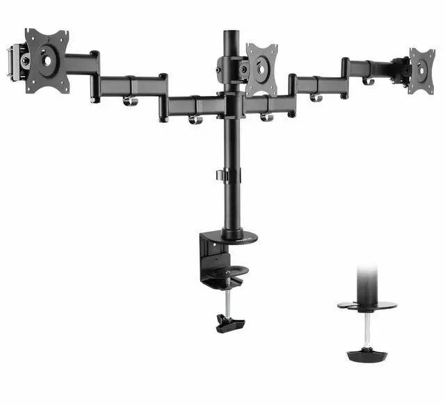 The ergonomic and versatile Mount-It! MI-1753 Triple Monitor Mount Arm and Desk Stand allows you to free up your desk space, while providing an ergonomic monitor installation height. Say goodbye to neck and shoulder pain and increase your productivity with this 3 screen mount.