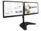 This sleek monitor desktop stand raises two displays off the desk surface, thus saving workspace and creating a productive display configuration to increase productivity. It is designed to mount two 13"-27" monitors in horizontal line and the weight capability for each one is 22 Ibs. It can rotate for 360?, which allows portrait and landscape viewing.
