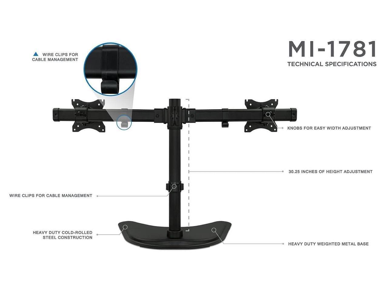 Mount-It! Dual Monitor Stand | Height Adjustable Fits Up to 27" Screens