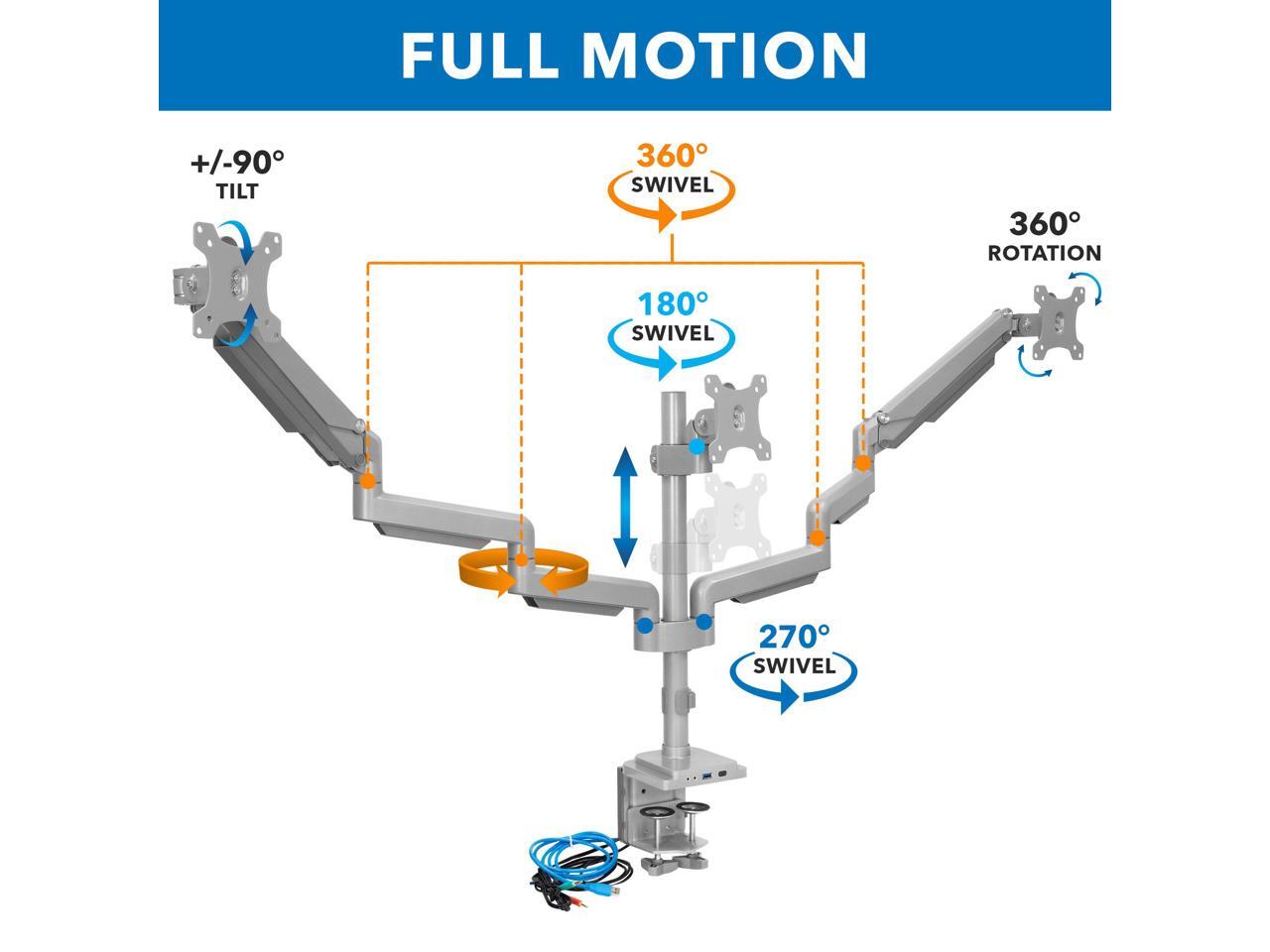 Triple Monitor Desk Mount for Samsung, Asus, Z-Edge, Viotek, GIGABYTE, LG, and leading brands of 17-32 Inch Monitors