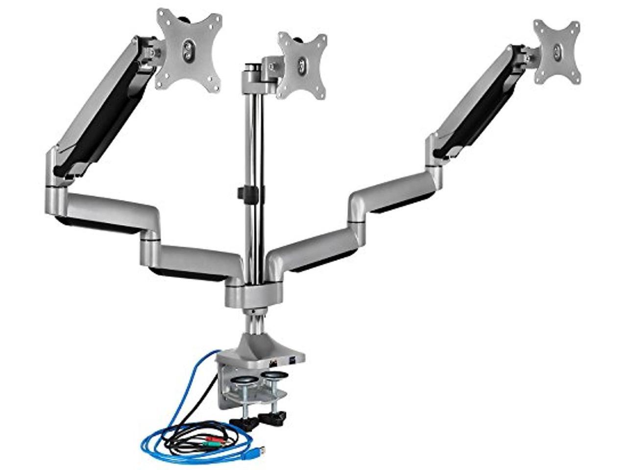 Mount-It! Triple Monitor Mount | Built In USB and Audio Ports| Fits Up to 32" Screens