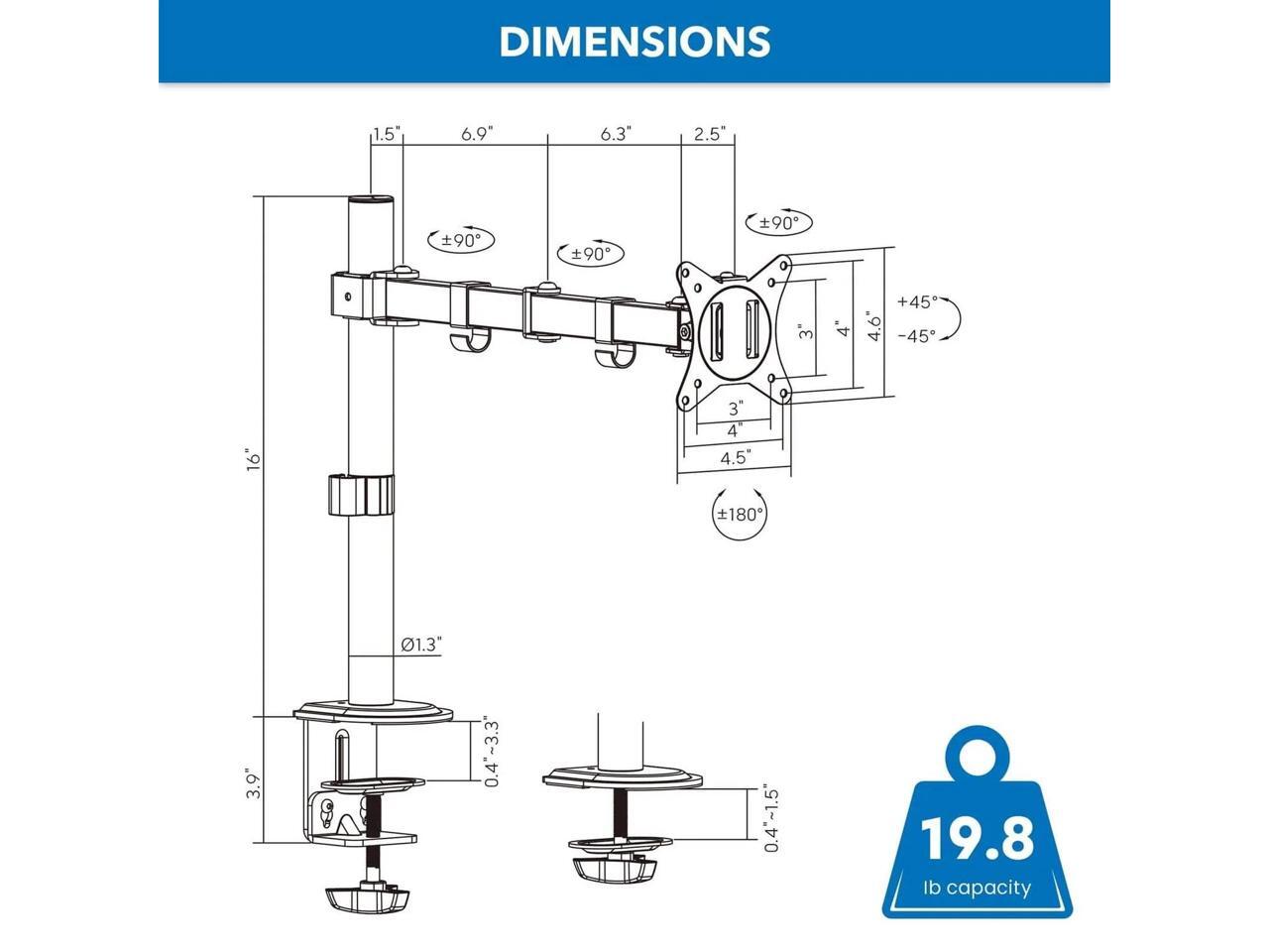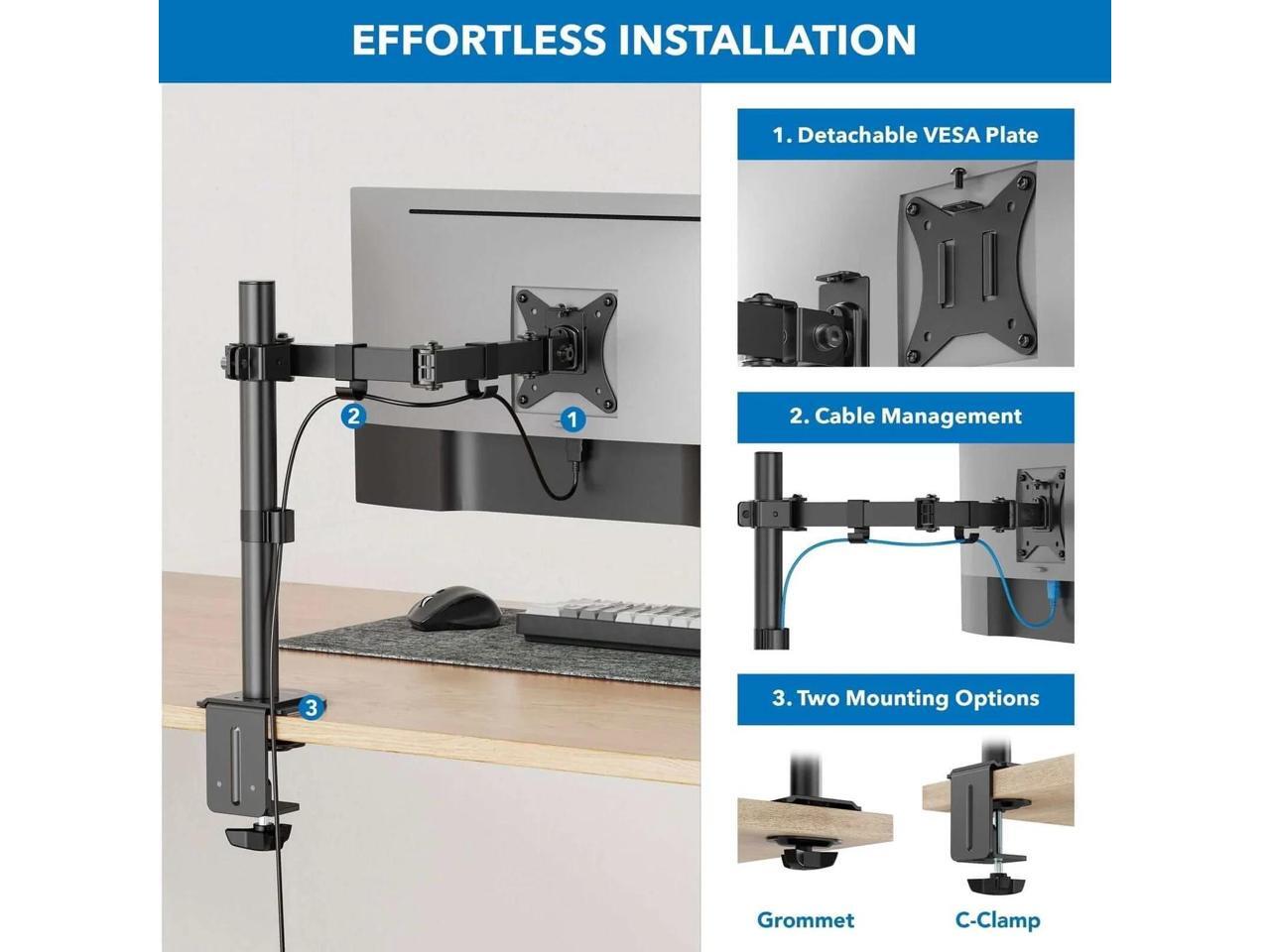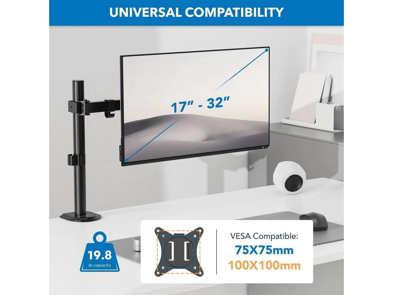 - Universally compatible with VESA patterns of 75x75 and 100x100, accommodating monitors weighing up to 19.8lbs and screen sizes ranging from 17" to 32"