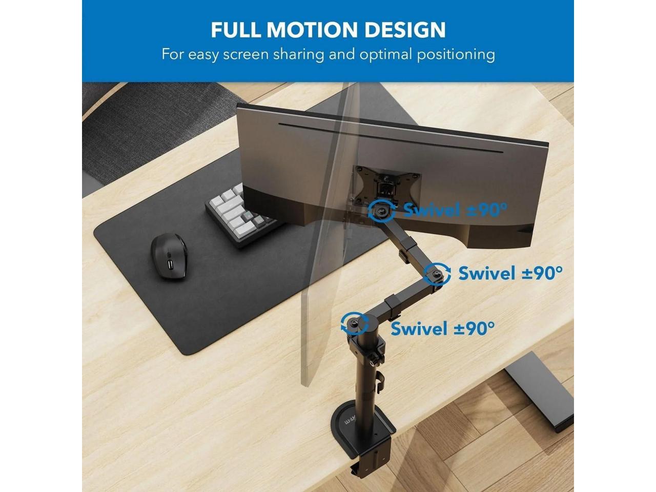 Mount-It! Single Monitor Arm Mount | Motion Height Adjustable Articulating Tilt | Fits 17-32 Inch Screens