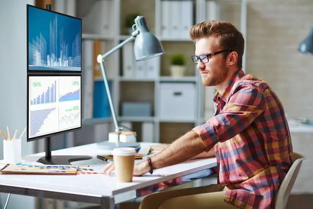Raise your monitors to ergonomic heights for a more comfortable view. Each screen can be adjusted individually for up to 15.5 inches.