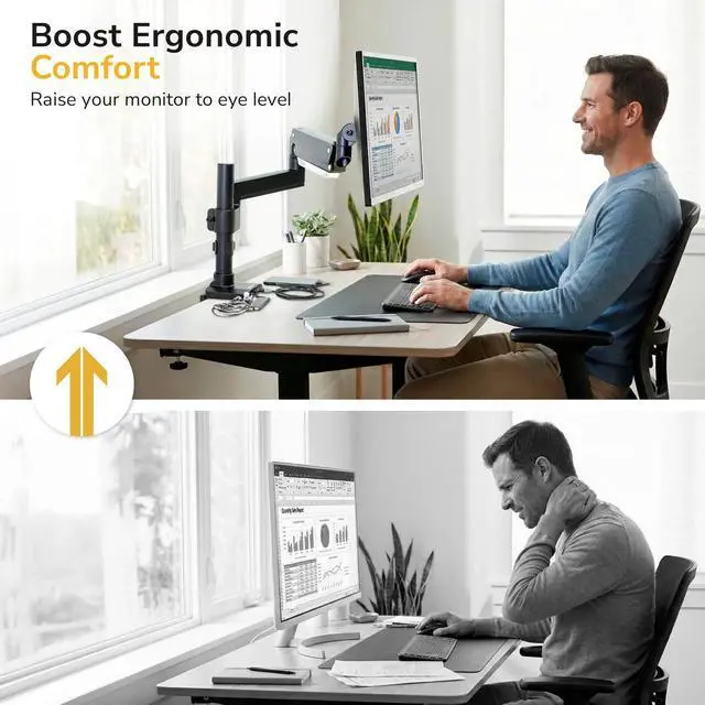 Quick release tab allows you to easily attach or detach your monitor from the arm, making for an easier installation process.