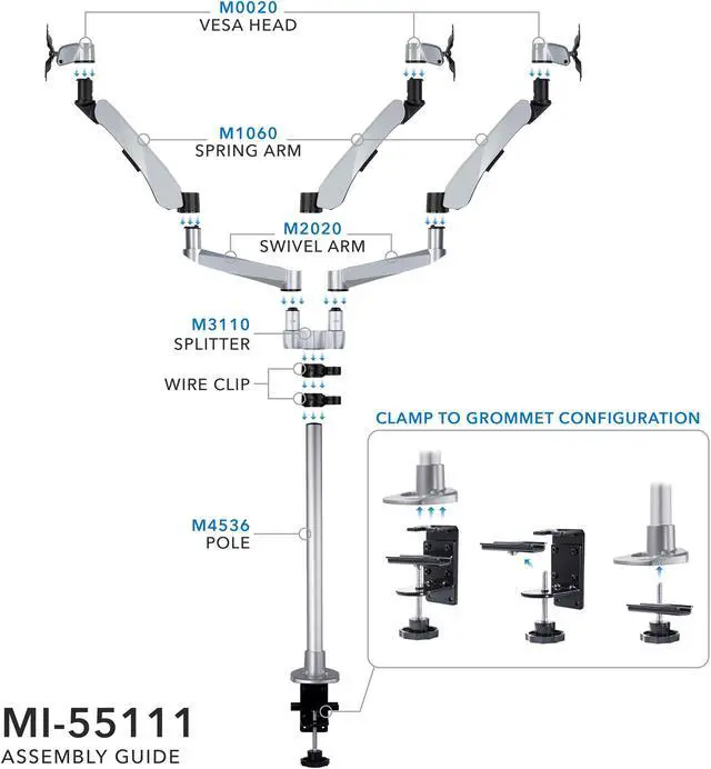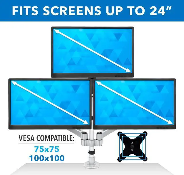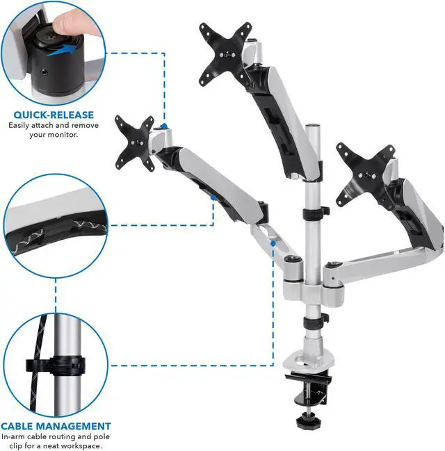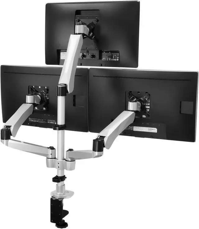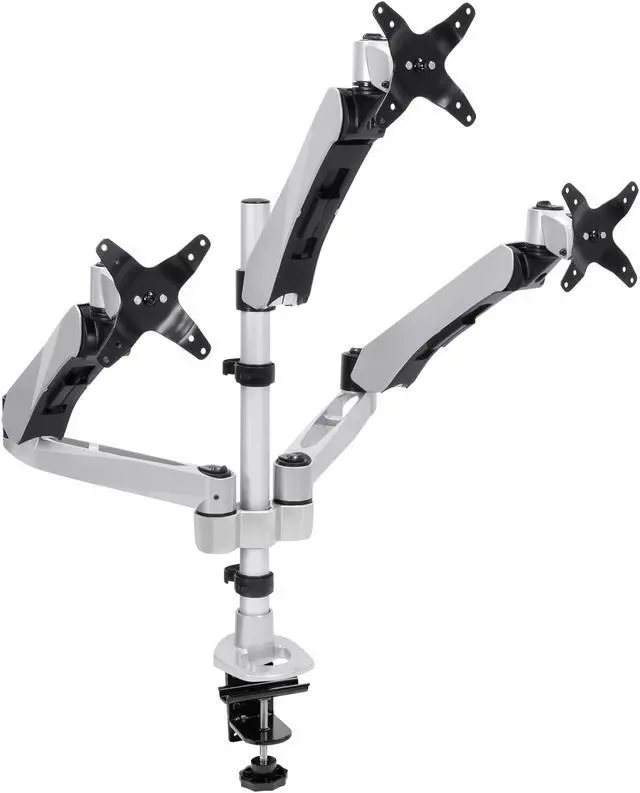 MI-52116 triple monitor desk mount features a full motion arm with smooth, full motion adjustments including height, tilt, swivel and rotation. This desk mount is designed to position your monitor perfectly for a healthier, more comfortable way to work throughout the day. Save desk space while improving posture by elevating your monitor off of the desk to eye level. This premium triple monitor mount is fully TAA (Trade Agreements Act) compliant and is suited for purchase by the U. S. government. It is a modular monitor mount, meaning it is fully customizable with the ability to add or remove monitor-mounting arms, which allows an organization to develop cost-effective, tailored solutions for their employees’ needs.