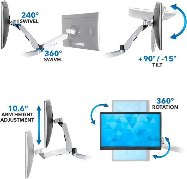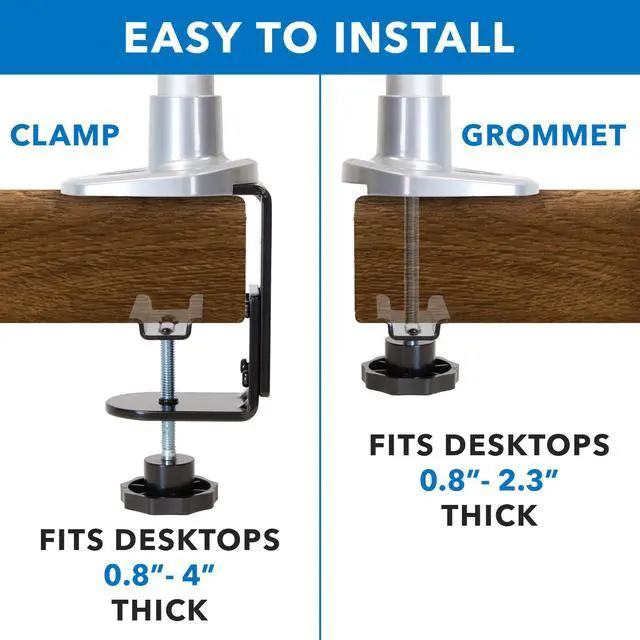 The grommet base easily attaches to any desk from 1” to 2” thick, making it an easy addition to any workspace. Heavy-duty aluminum construction gives this mounting arm a 30lb load capacity, plenty for most monitors on the market and fits monitors up to 24”.