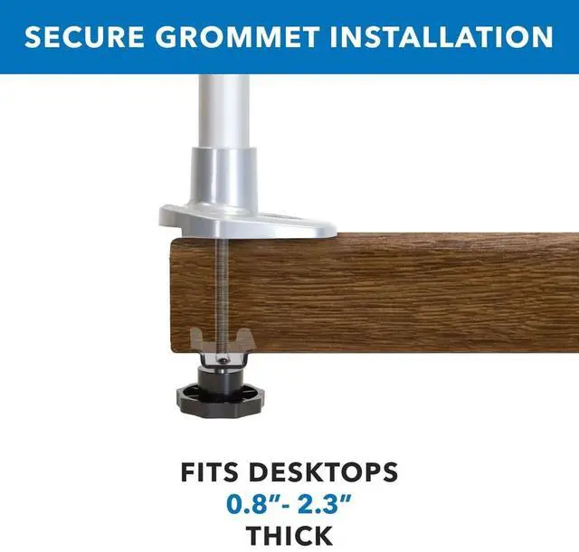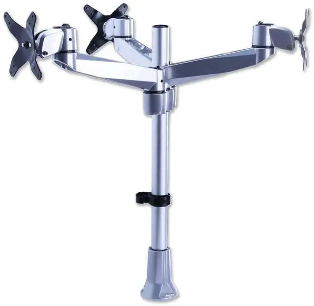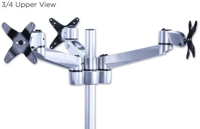 This triple monitor mount is ideal for public spaces that require computer use. Each mount can support 27 inch screens up to 19.8 pounds, and can swivel and tilt to suit your viewing needs.