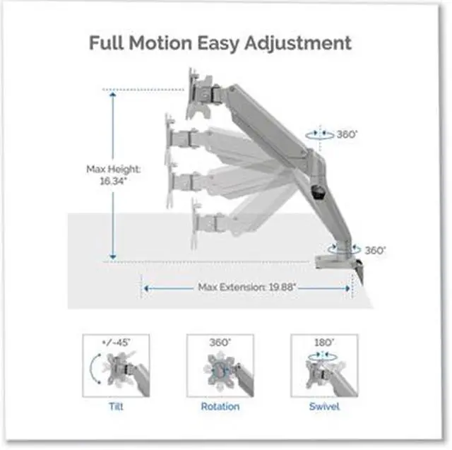 - FULL MOTION: Full motion adjustability with 360° rotation and +/-45° tilt, plus integrated cable management, keeps your workspace tidy and optimized.