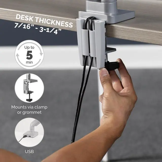 - EASY INSTALLATION: Quick-Fit VESA plate ensures easy installation on tables or desks using either a clamp or grommet.
