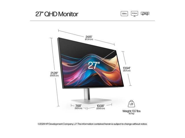 HP Series 7 Pro 727pq 27" 16:9 WQHD 120Hz IPS LCD Monitor, Natural Silver