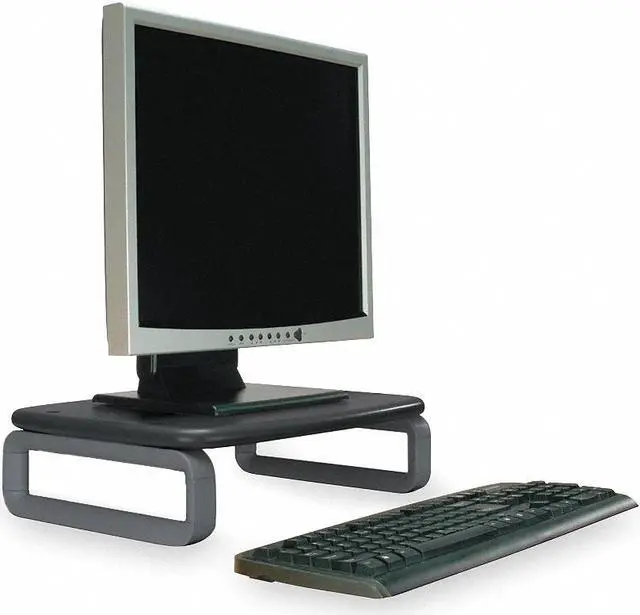 Monitor Stand, Plastic, Black/Gray, Weight Capacity 80 lb, Length 15 1/2 in, Width 12 in, Height 5 1/2 in, Depth 15 1/2 in, Includes Hardware