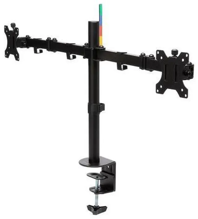 Quick-release VESA 75/100 mounting plates accommodate monitors up to 32" and 8kg/ 17.6 lbs (per arm). Cable management system eliminates cable clutter for a cleaner desktop.