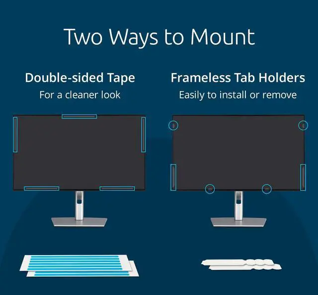 • Mount using the included frameless tab holders or the double-sided tape.
