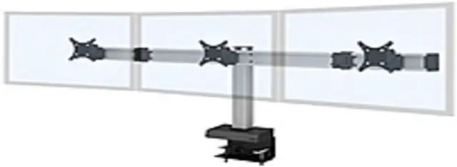 The INNOVATIVE OFFICE 62717-3-104 triple monitor mount offers a sturdy construction that can suspend three monitors above the work surface. This triple monitor stand was designed to enable easy installation or replacement of monitors.